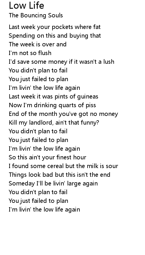 I'm livin' the low life again |