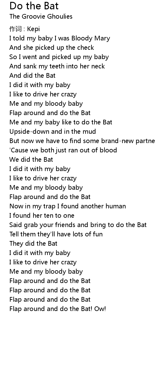 | Me and my baby like to do the Bat | |