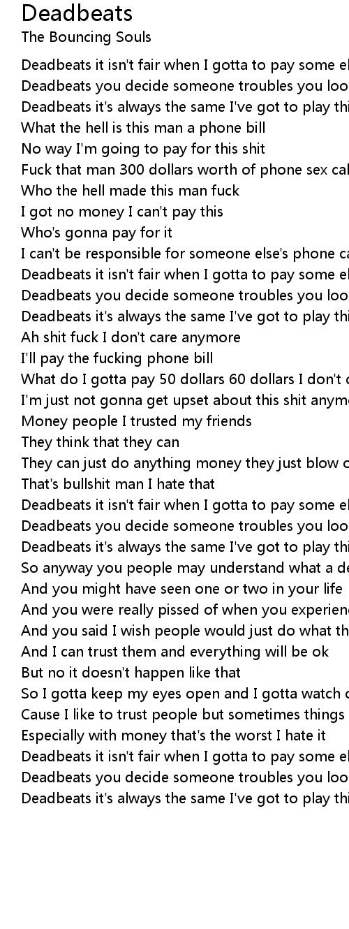Deadbeats it isn't fair when I gotta to pay some else's share