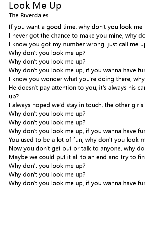 I know you wonder what you're doing there, why don't you look me up? |