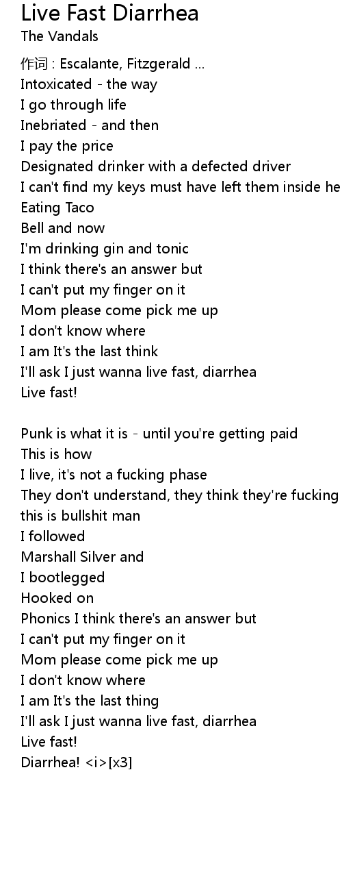 | I'll ask I just wanna live fast, diarrhea | |