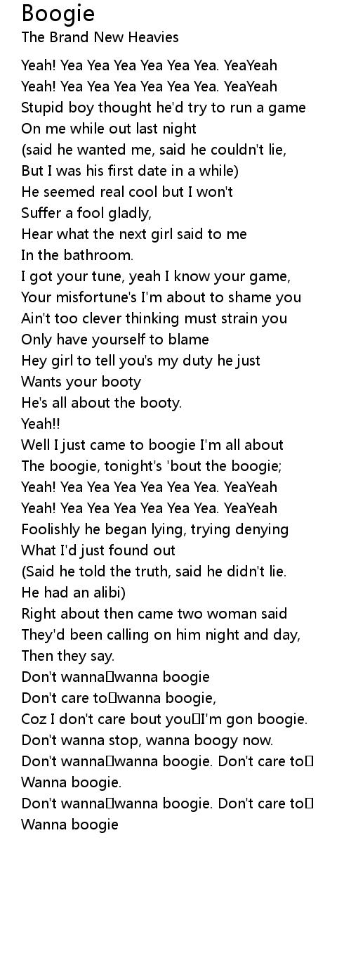 | Don't care to wanna boogie, | |