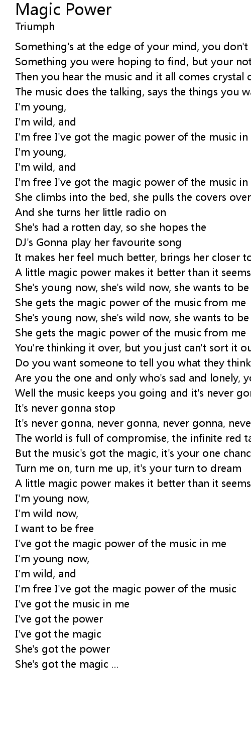 I've got the magic power of the music in me