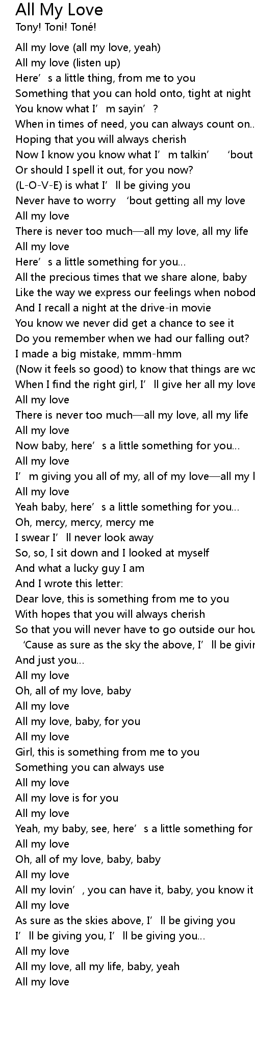 | [03:29.359] | I' m giving you all of my, all of my love all my love, all my life |