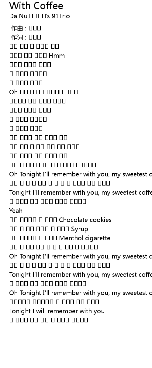 | [02:15.318] | Tonight I'll remember with you, my sweetest coffee |