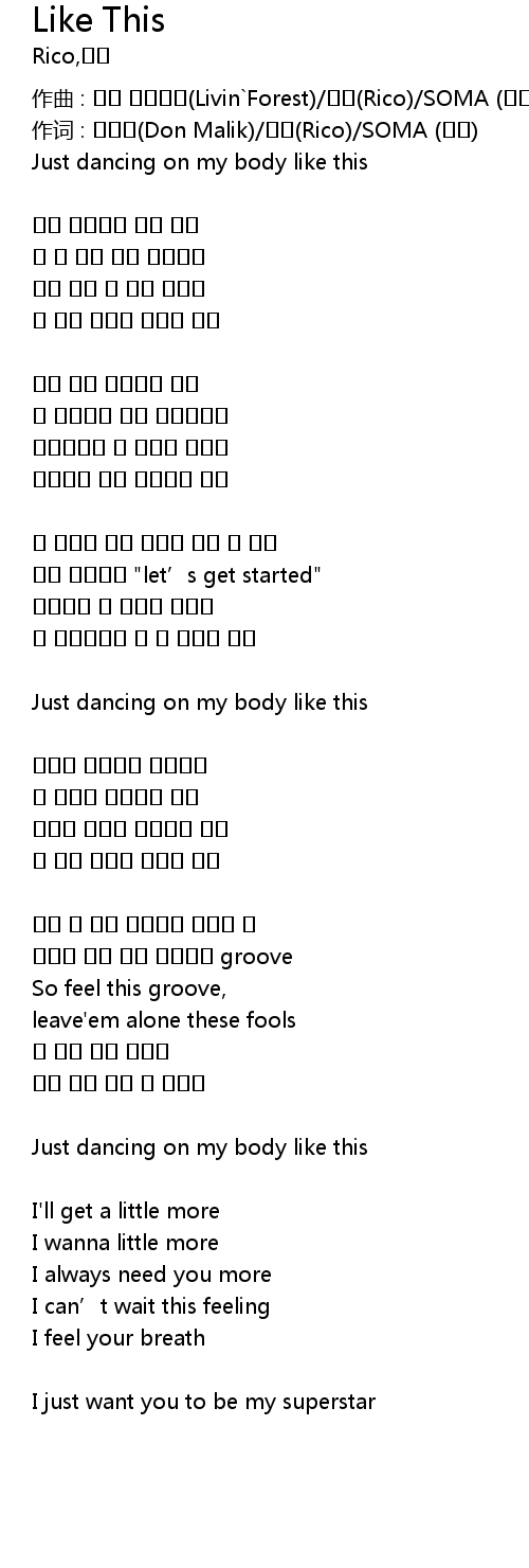 | 作词 : 던말릭(Don Malik)/리코(Rico)/SOMA (소마) | |