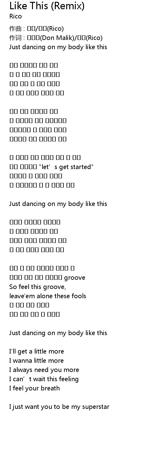 | 作词 : 던말릭(Don Malik)/리코(Rico) | |
