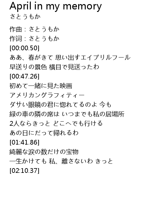 | [00:23.85] | ああ、春がきて 思い出すエイプリルフール |
