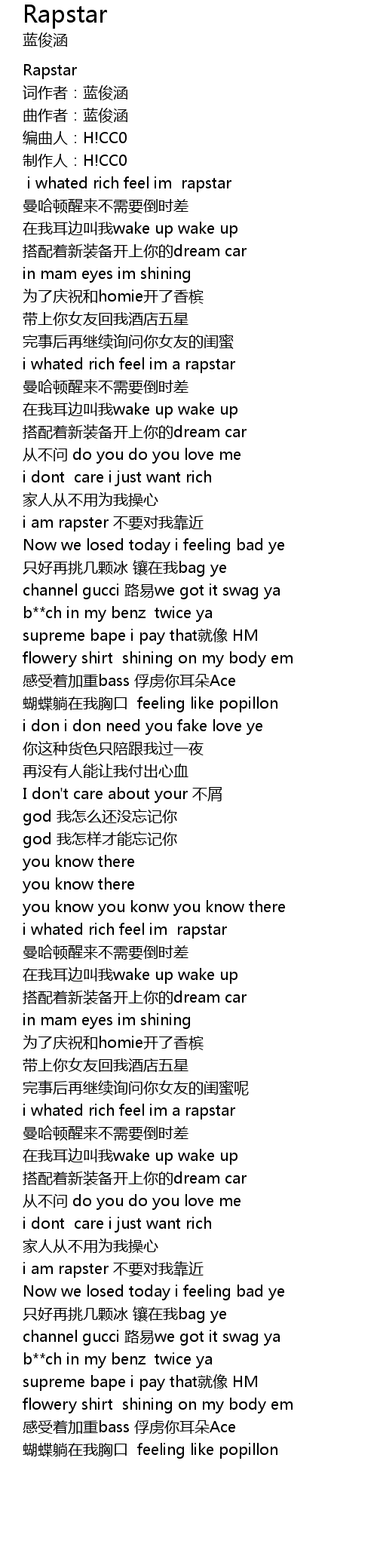 | i whated rich feel im rapstar | |