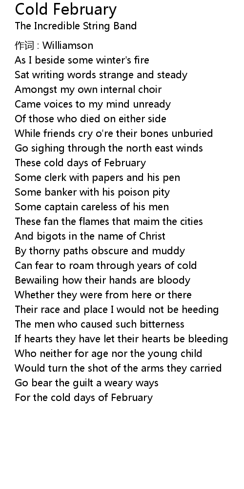 | 歌曲 | Cold February |