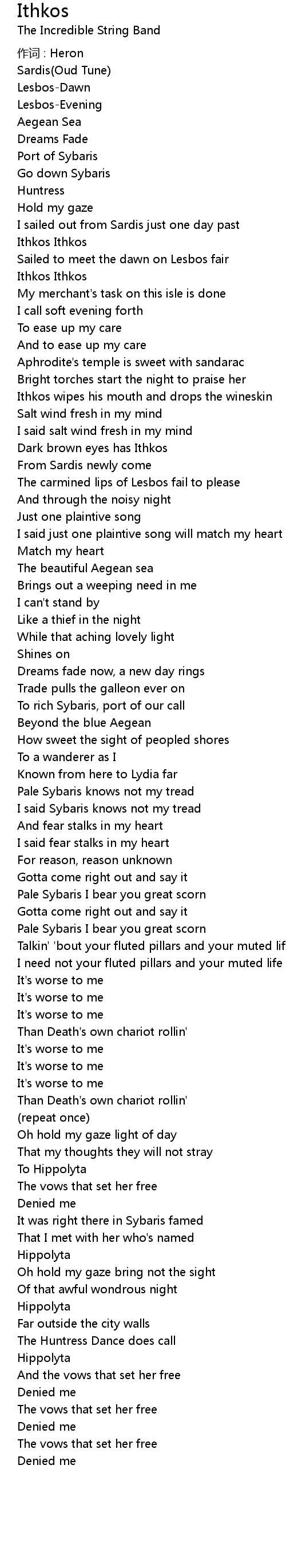 | 歌曲 | Ithkos |