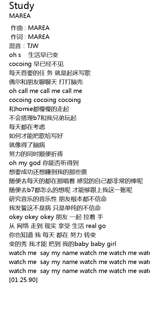 | [01:21.16] | watch me say my name watch me watch me watch me |