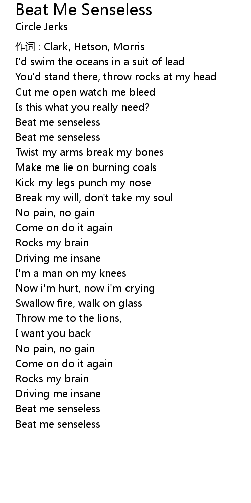 | 歌曲 | Beat Me Senseless |