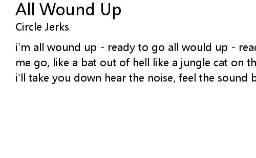| i'm all wound up - ready to go all would up - ready to go clang my bells watch me go, like a bat out of hell like a jungle cat on the prowl i'll be on you, i'll take you down hear the noise, feel the sound beat, right in the pound |