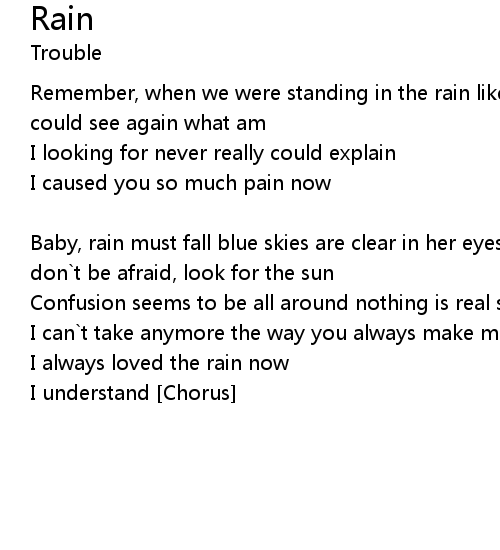 Baby, rain must fall blue skies are clear in her eyes rain, she keeps fallin` don`t be afraid, look for the sun |