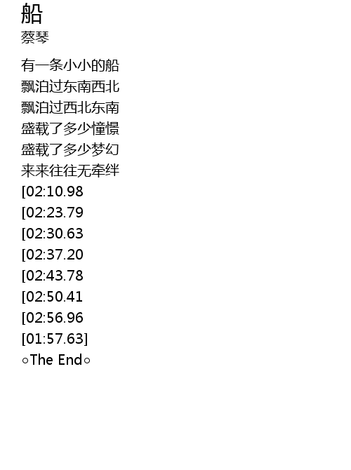 | [00:13.36] | you yi tiao xiao xiao de chuan |