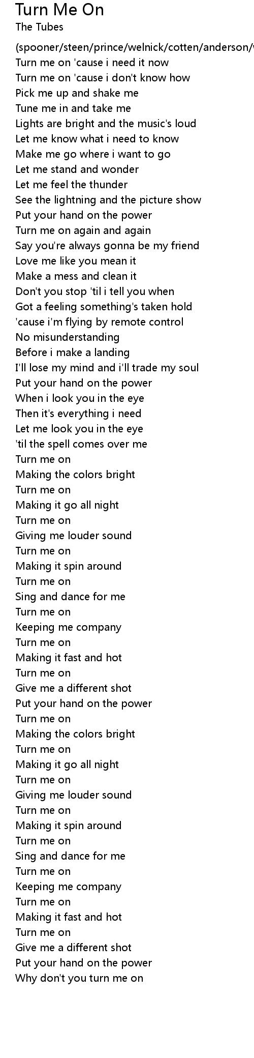 Turn me on 'cause i need it now