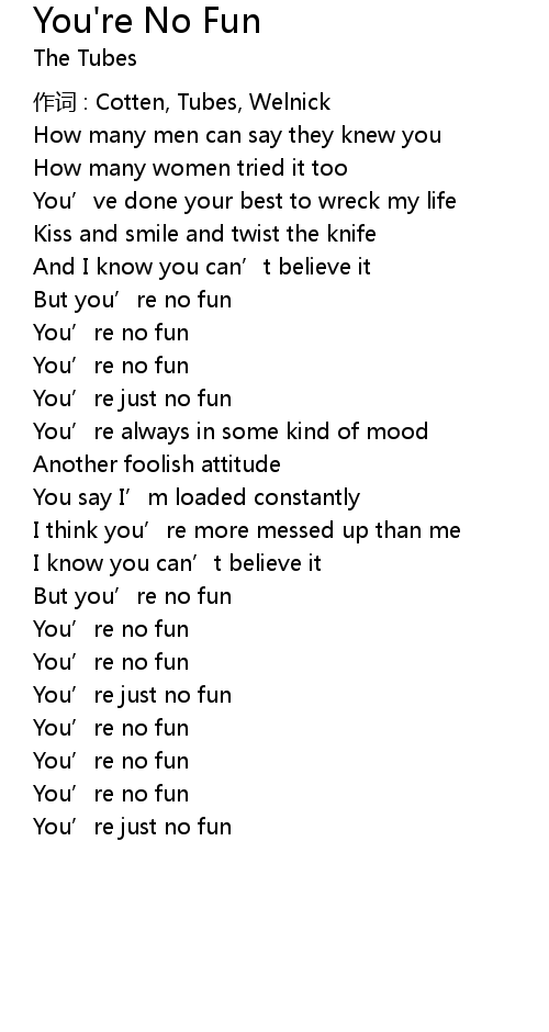 | 歌曲 | You're No Fun |