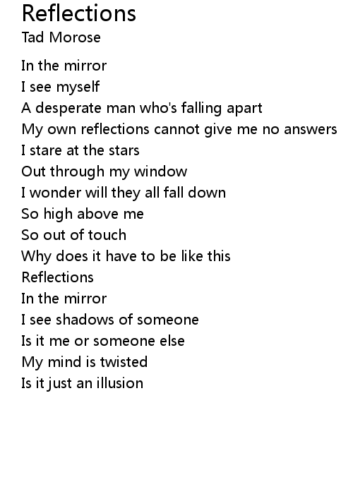 | My own reflections cannot give me no answers | |