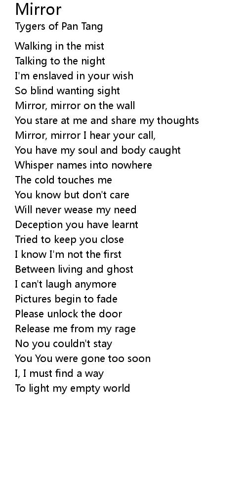 Mirror, mirror I hear your call, |