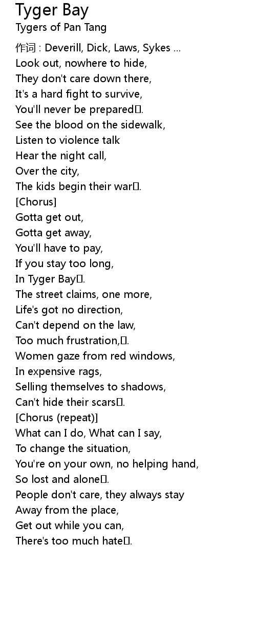 | 歌曲 | Tyger Bay |