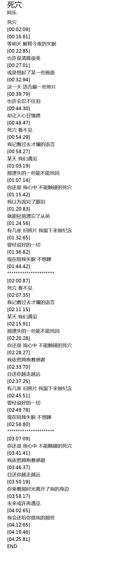 | [02:21.84] | 你还是 我心中 不能触碰的死穴 |
