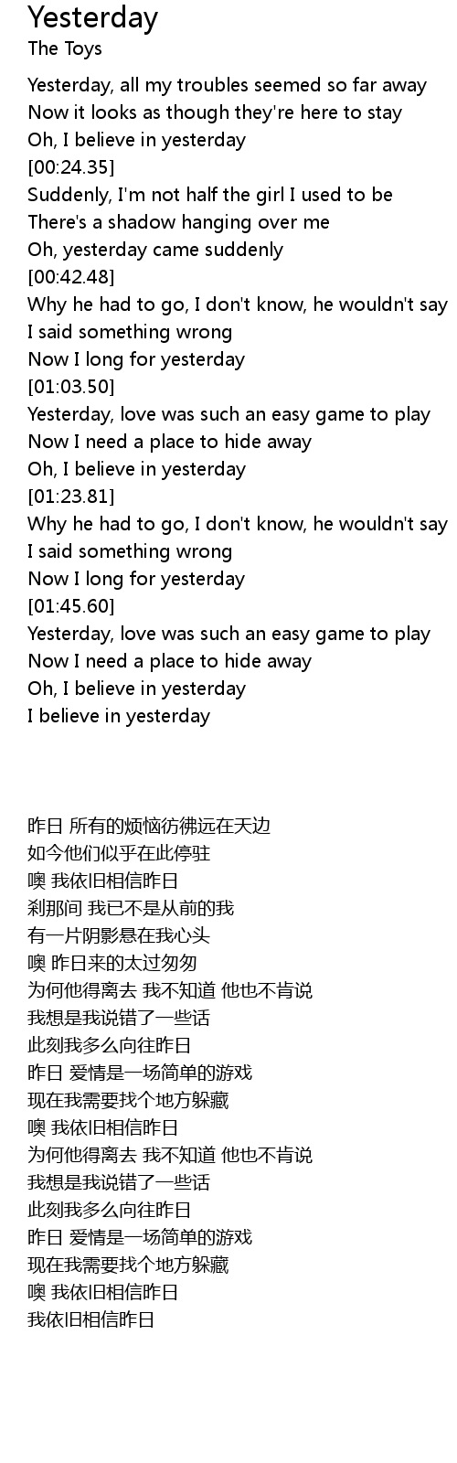 I believe in yesterday |