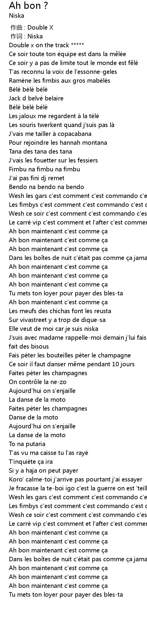 | [01:16.73] | Elle veut de moi car je suis niska |