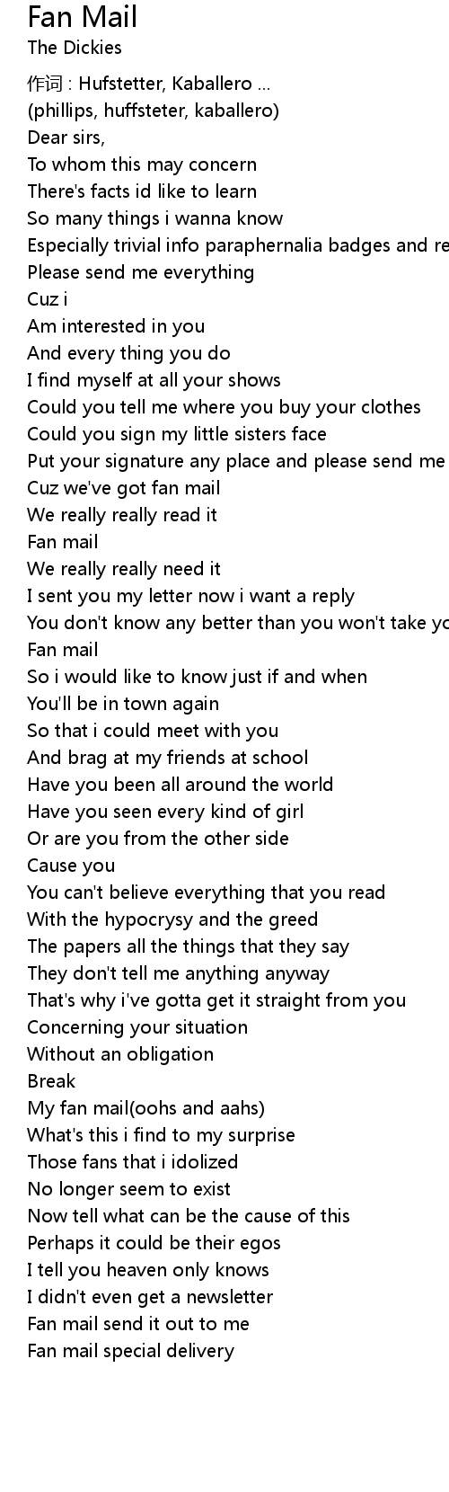 | Fan mail send it out to me | |