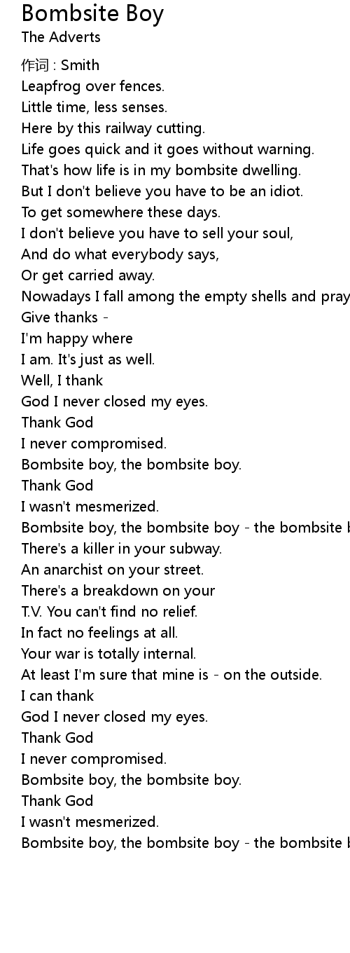 | Bombsite boy, the bombsite boy the bombsite boy. | |