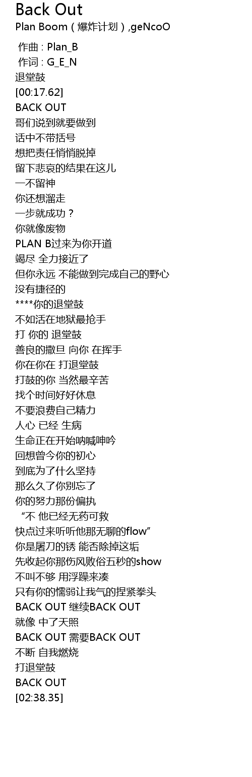 | [01:59.67] | BACK OUT 继续BACK OUT |