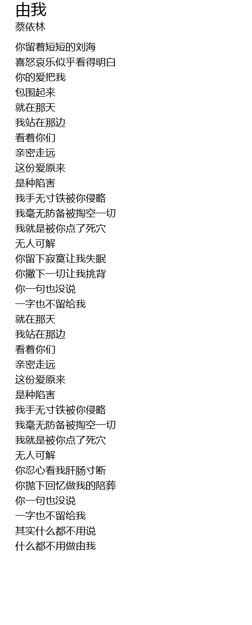 | 歌曲 | 由我 |