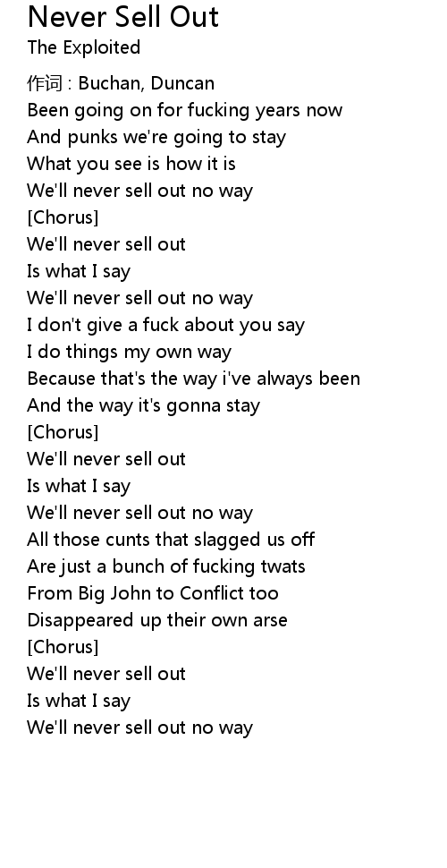 | We' ll never sell out | |