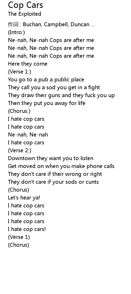 | 歌曲 | Cop Cars |