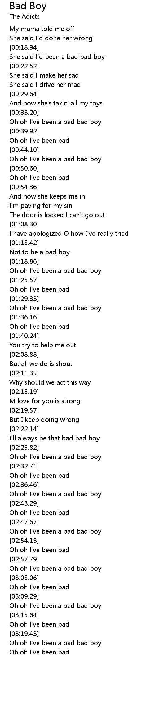 Oh oh I've been a bad bad boy |