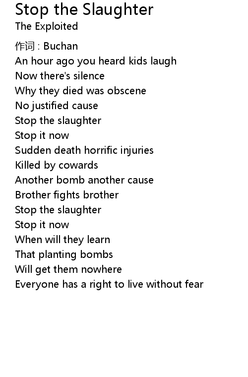 | Stop the slaughter | |