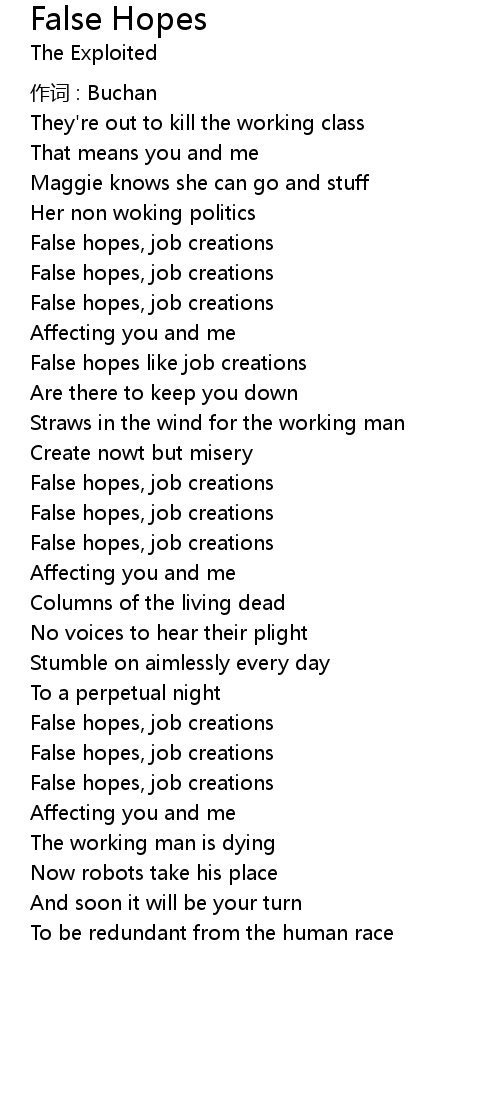 | False hopes, job creations | |