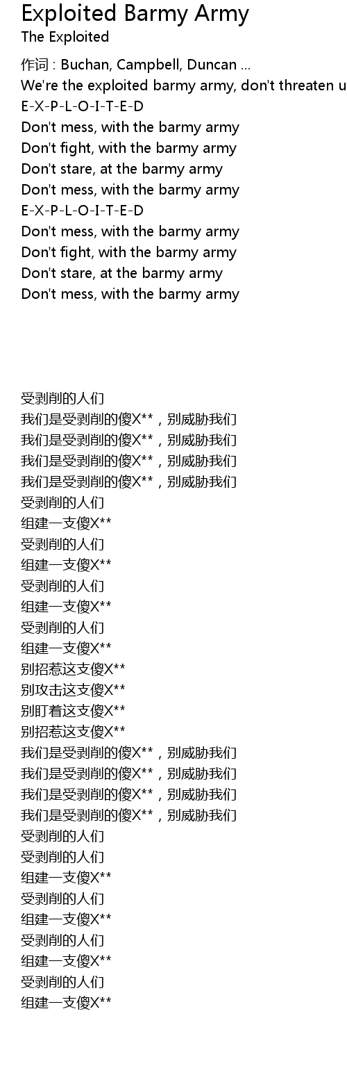 | 歌曲 | Exploited Barmy Army |