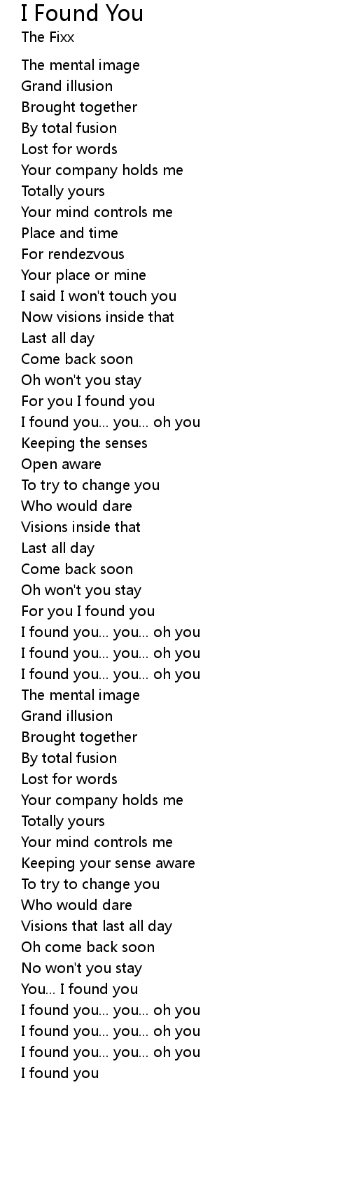 I found you... you... oh you |