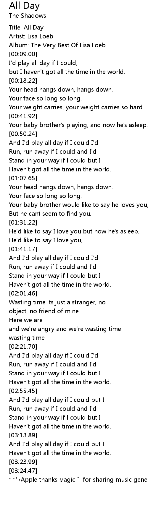 | [03:24.98] | Apple thanks i for sharing music generously. |