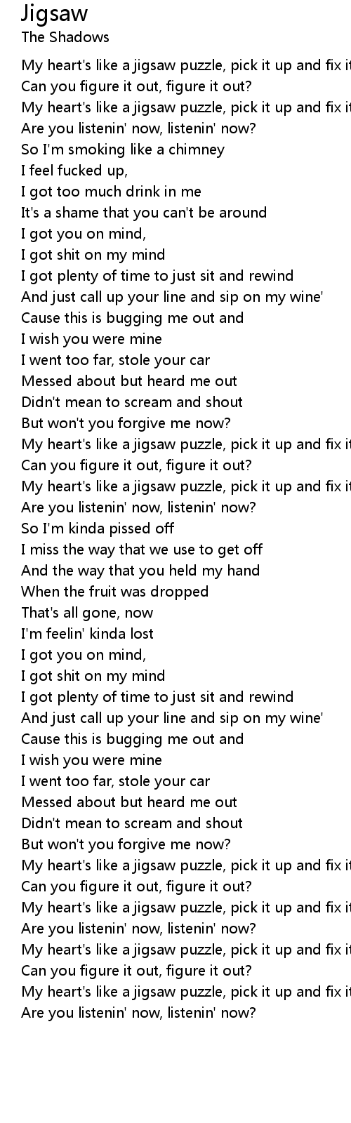 My heart's like a jigsaw puzzle, pick it up and fix it for me |