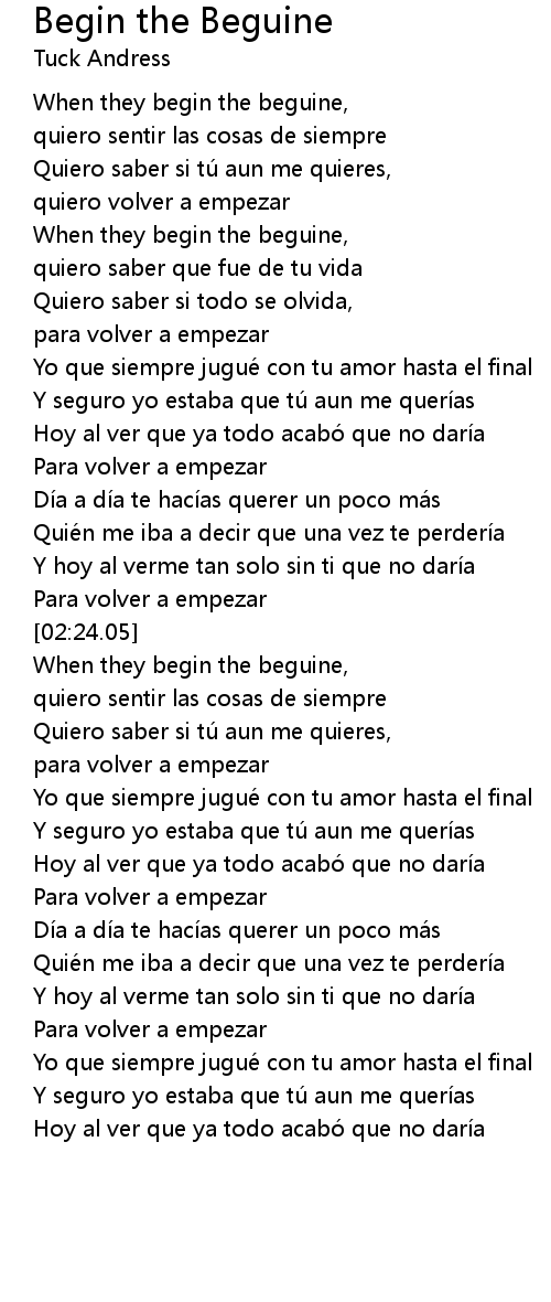| [02:37.24] | When they begin the beguine, |