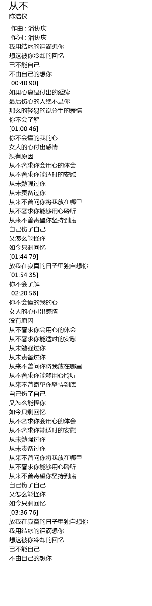 | [03:13.36] | cóng wèi miǎn qiǎng guò nǐ |