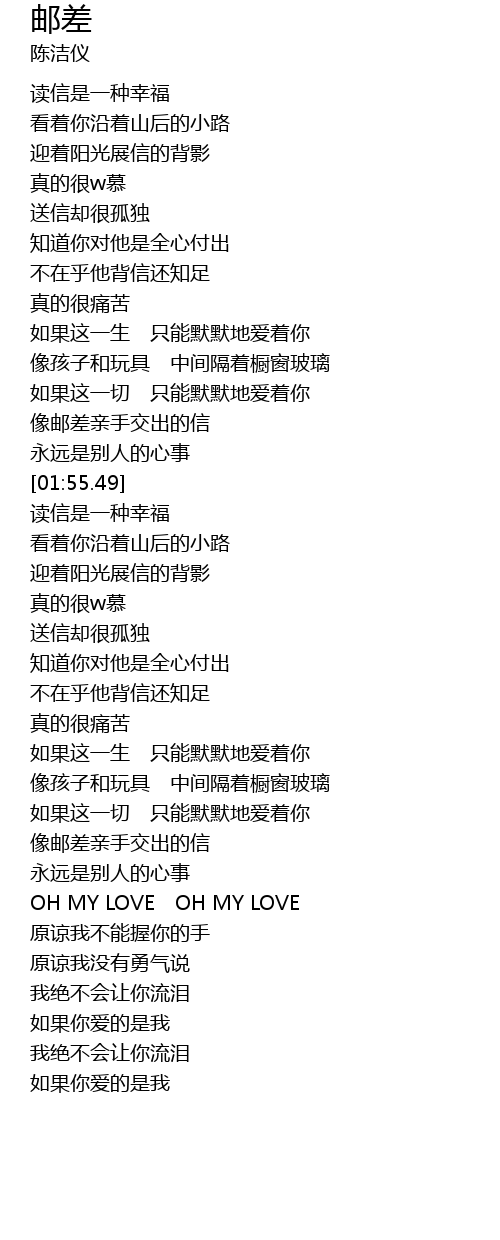 | [01:42.85] | 像邮差亲手交出的信 |