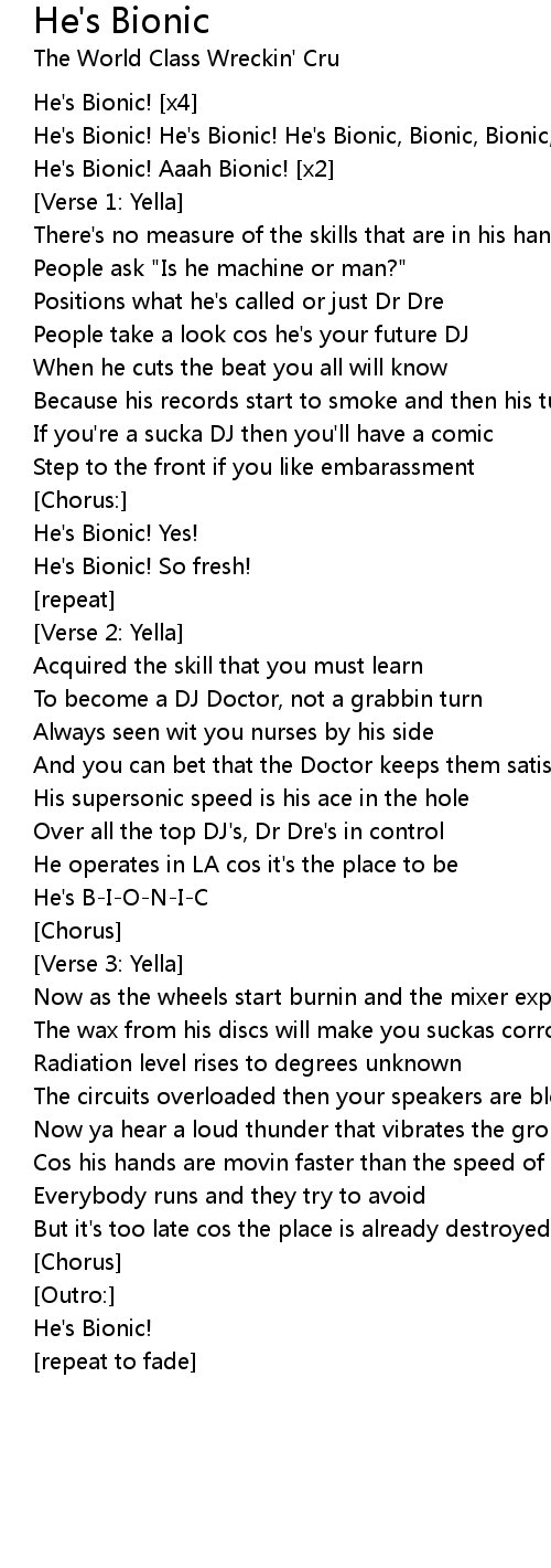 He's Bionic! He's Bionic! He's Bionic, Bionic, Bionic, Bionic!!!! |