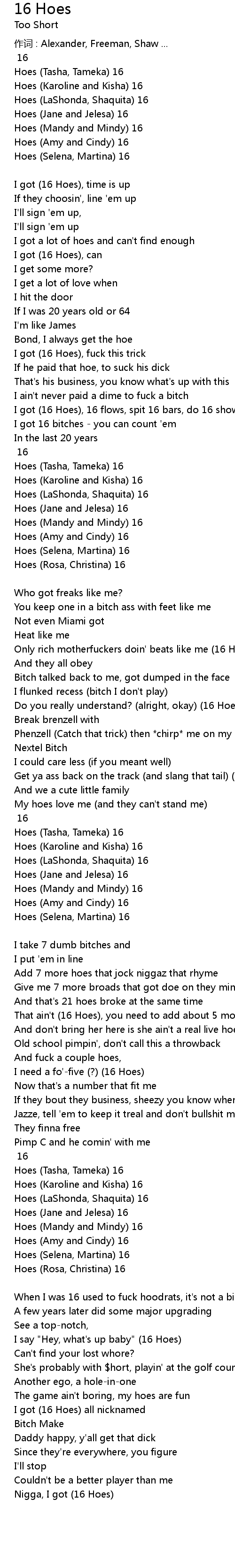 | I got (16 Hoes), 16 flows, spit 16 bars, do 16 shows | |
