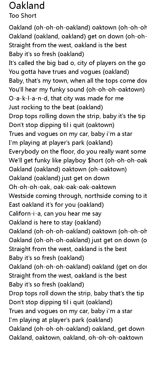 Oakland (oh-oh-oh-oakland) oaktown (oh-oh-oh-oaktown) |