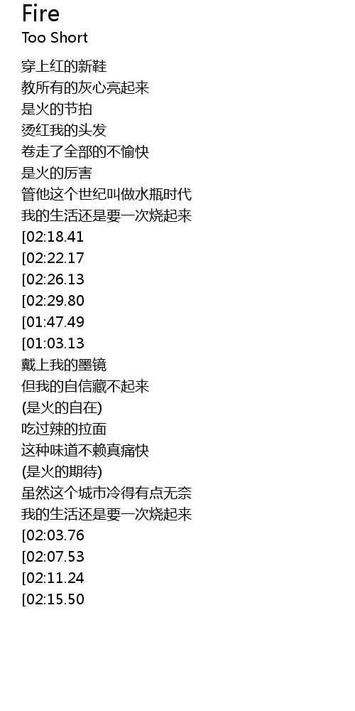 | [00:43.00] | 我的生活还是要一次烧起来 |