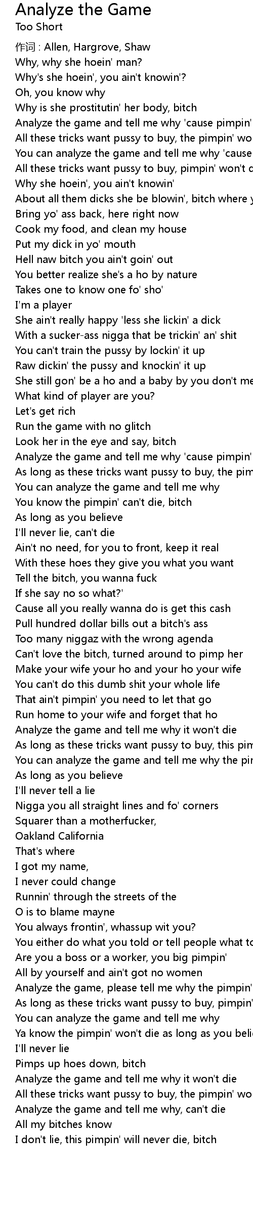 | You can analyze the game and tell me why ' cause pimpin' can' t die | |