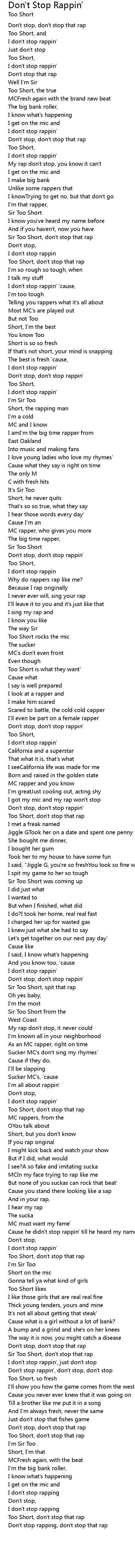 I don't stop rappin' 'cause,